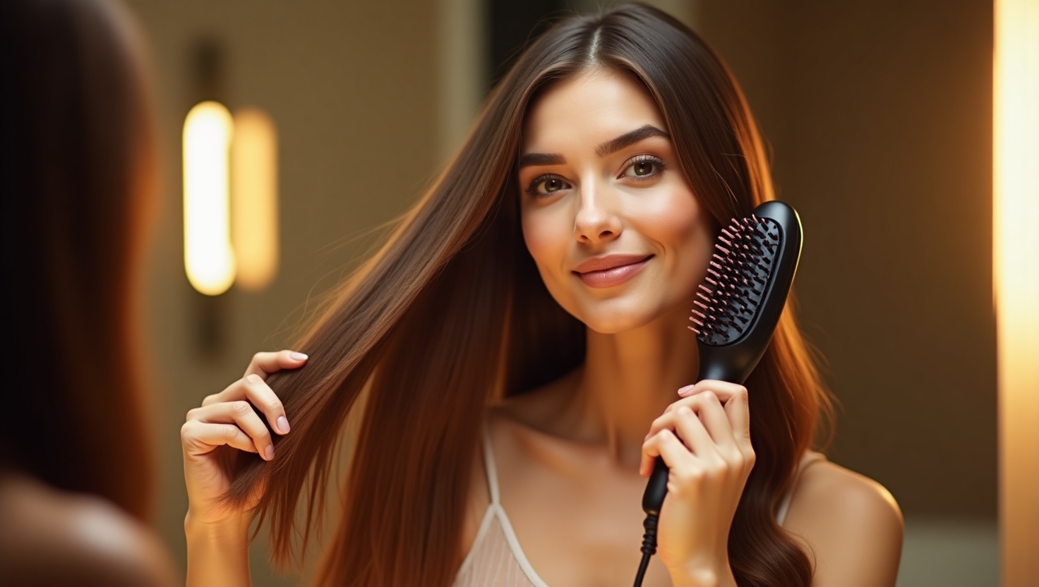 موها را به دستههای کوچک تقسیم کنید. از ریشه تا نوک مو، برس را بهآرامی حرکت دهید – هر دسته را 2-3 بار شانه کنید. برای محافظت از مو در برابر حرارت، از اسپری محافظ استفاده کنید. این کار درخشندگی را افزایش میدهد! زمان صاف کردن مو با برس حرارتی معمولاً 5-10 دقیقه است. برای موهای ضخیم، دمای بالاتر را امتحان کنید، اما مراقب باشید!